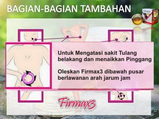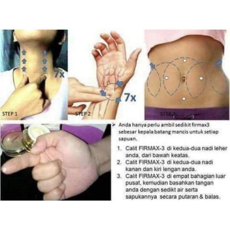 Assalamualaikum semua pembaca. Up to 24 cash back FIRMAX3 - CARA PENGGUNAAN Sapu Dengan Urutan Lembut Pada Leher Bawah Lengan Ke Atas. Gunakan Firmax minimal 2x sehari.